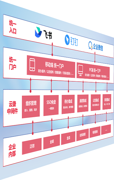 对协作平台提供支持服务,,支持企业应用与协作平台对接,,包含组织同步、、、消息集成、、、待办集成等。。。支持目前主流的协作平台:钉钉、、企微和飞书。。。